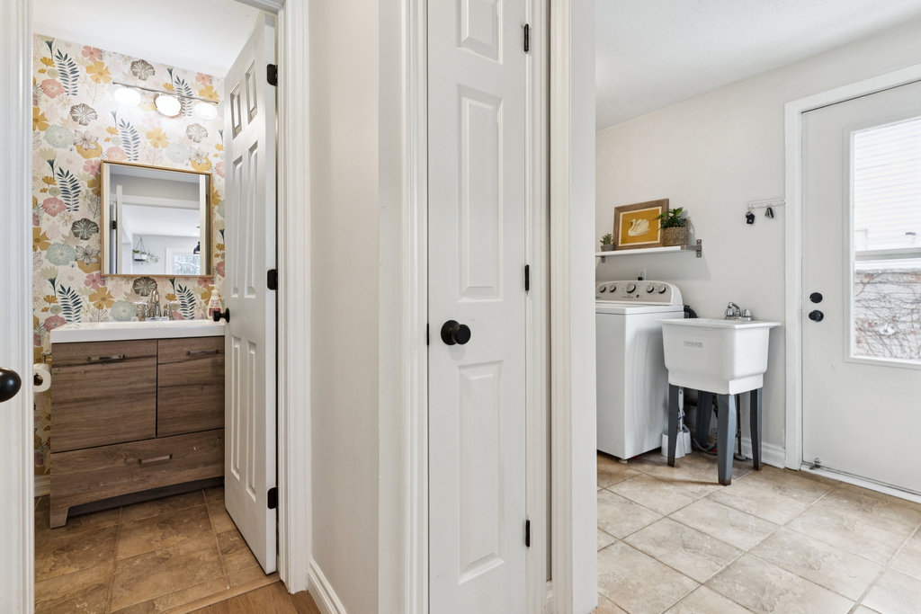 Convenient mudroom and laundry area with access to the double-car garage
