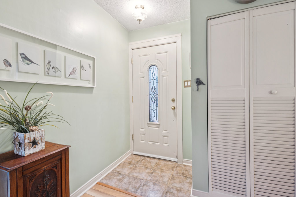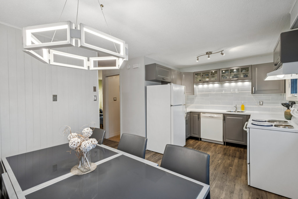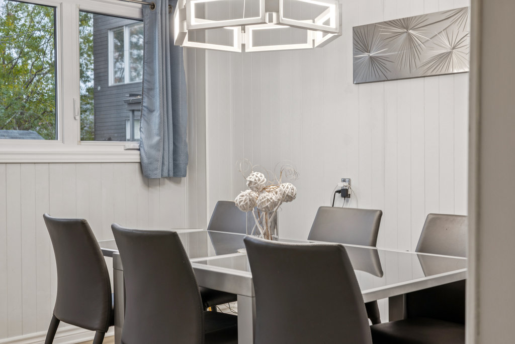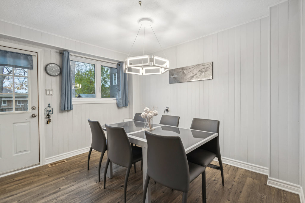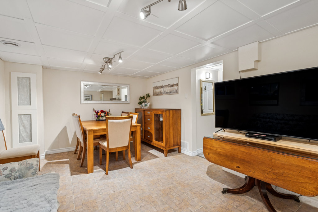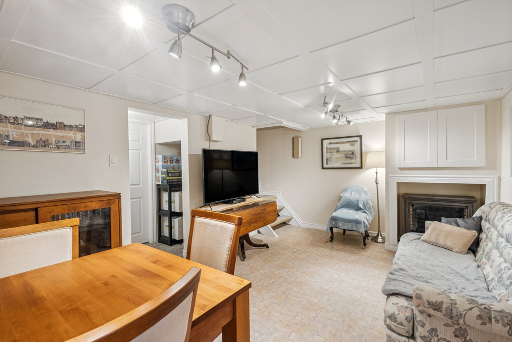 Bright and welcoming with a sun-filled living room, remodelled kitchen, dining area, and convenient powder room with laundry.