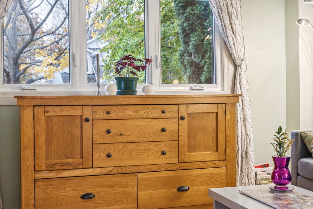 • Bright and welcoming living room with large south-facing window for all-day natural light