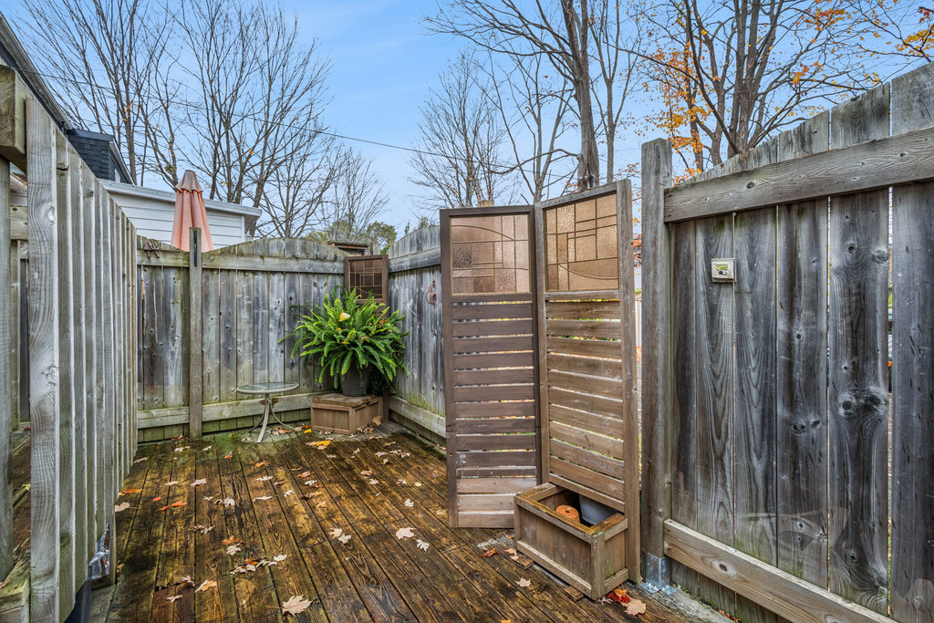 End-unit with a private, fully fenced, low-maintenance backyard—perfect for relaxing or entertaining outdoors.