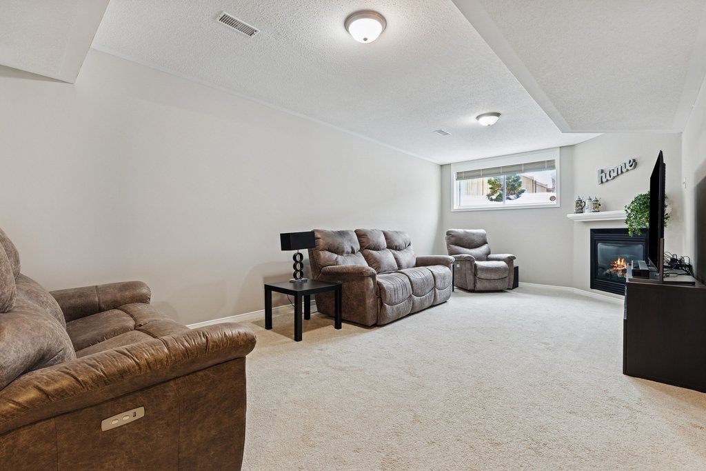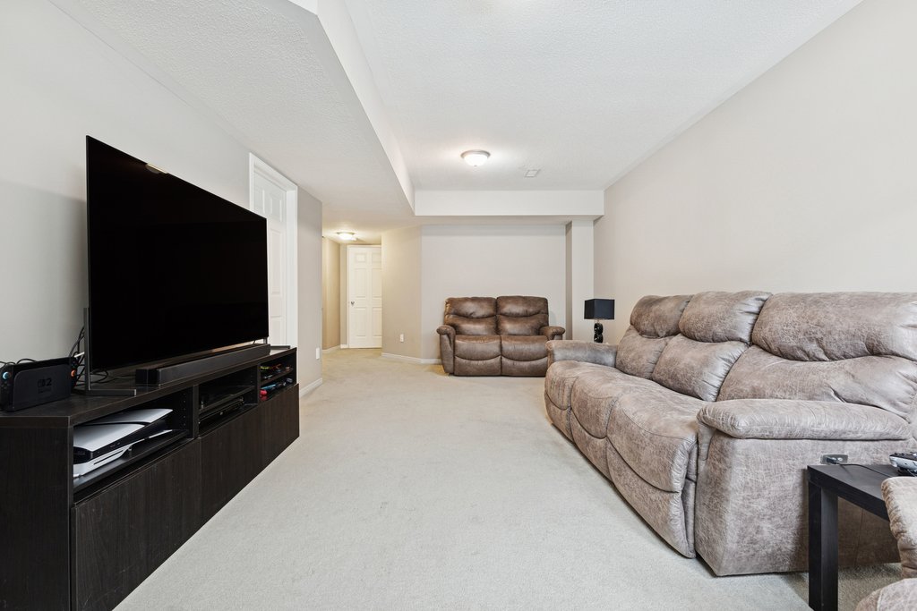 A bright and inviting fully finished basement – perfect for family movie nights!